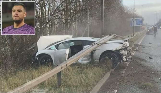 เมื่อเช้าวันจันทร์ตามเวลาที่อังกฤษ มีภาพมือกาววัย 32 ปี ยืนเซ็งอยู่ข้างทางพร้อมกับสภาพรถ Lamborghini คันงามของตนเองพุ่งชนทะลุราวเหล็กข้างถนนใกล้กับสนามซ้อมของทีม “ปีศาจแดง”
