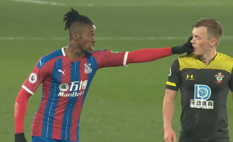 วิลฟรีด ซาฮา ปีกคริสตัล พาเลซ เอานิ้วมือทิ่มใส่ใบหน้าเฉี่ยวลูกตาของ เจมส์ วอร์ด-พราวส์ มิดฟิลด์เซาธ์แฮมป์ตัน ในเกมพรีเมียร์ลีกเมื่อคืนวันอังคารที่ผ่านมา