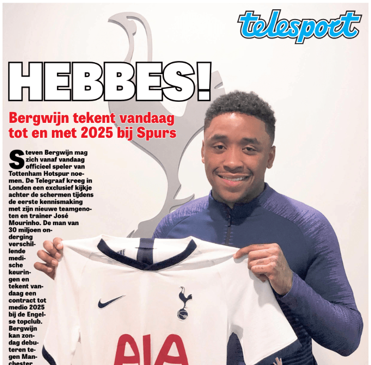 แม้ยังไม่ประกาศอย่างเป็นทางการแต่ไม่พลาดแน่นอน เมื่อ De Telegraaf สื่อแดนกังหัน ตีพิมพ์บทความพิเศษที่ สตีเฟ่น เบิร์กไวจ์น ปีกตัวเก่งของพีเอสวี ไอน์โฮเฟ่น ชูเสื้อของท็อตแน่ม ฮอทสเปอร์และได้พบปะกับโจเซ่ มูรินโญ่ กุนซือเวิร์ส วันเรียบร้อยแล้ว