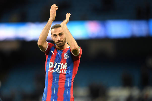 MANCHESTER, ENGLAND – JANUARY 18: Cenk Tosun of Crystal Palace looks on during the Premier League match between Manchester City and Crystal Palace at Etihad Stadium on January 18, 2020 in Manchester, United Kingdom. (Photo by Michael Regan/Getty Images)