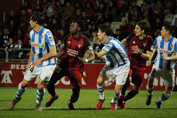 ลูกจุดโทษของ มิเกล โอยาร์ซาบัล ช่วงท้ายครึ่งแรก เป็นประตูเดียวในเกมที่ช่วยให้ เรอัล โซเซียดาด บุกมาชนะ มิรานเดส ผ่านเข้ารอบชิงชนะเลิศศึกโกปา เดล เรย์ ด้วยสกอร์รวม 3-1 ไปรอพบผู้ชนะระหว่าง แอธเลติก บิลเบา และ กรานาด้า