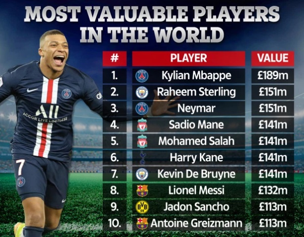 มีการเปิดเผยค่าตัวในการย้ายทีมล่าสุดของเหล่าซูเปอร์สตาร์นักเตะ เหลือเชื่อ ลิโอเนล เมสซี่ ดาวเตะหมายเลข 1 โลก มูลค่าในการย้ายทีมดร็อปลงมาอยู่ต่ำถึงอันดับ 8 ขณะที่ คีเลียน เอ็มบาปเป้ ถูกตีราคาเป็นแข้งแพงที่สุดในโลกไปแล้วที่ 188 ล้านปอนด์