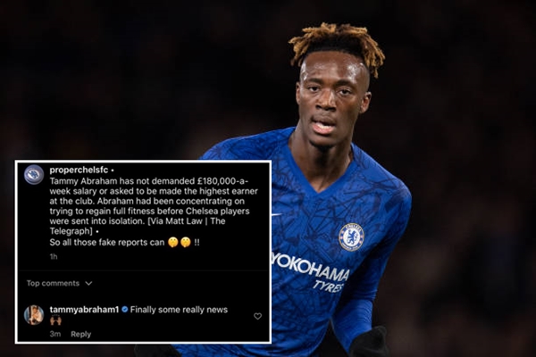 กองหน้าเชลซี แทมมี่ อับราฮัม ออกมาตอบโต้ข่าวลือที่ว่าเขาเรียกร้องค่าเหนื่อยแพงสุดในทีมในการต่อสัญญาใหม่