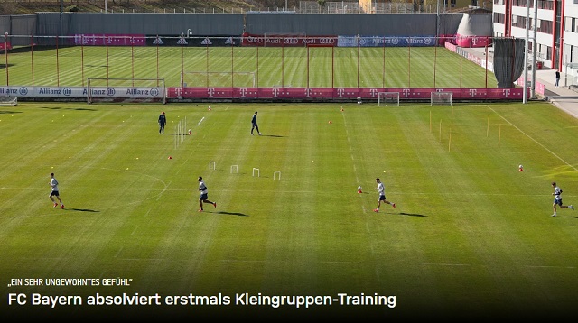 ทีมยักษ์ใหญ๋ในลีกบุนเดสลีก้า”เสือใต้” บาเยิร์น มิวนิค กลับมาเริ่มซ้อมอีกครั้งไปเป็นที่เรียบร้อยแล้ว เมื่อวันจันทร์ที่ผ่านมา โดยเป็นการแบ่งกลุ่มย่อยแยกซ้อมอย่างระมัดระวัง จากสถานการณ์วิกฤตโควิด-19 ทำให้บุนเสลีกาต้องเลื่อนการแข่งขันอยู่ในขณะนี้