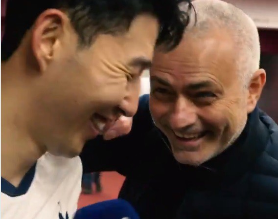 ยอดกุนซือทอตแน่ม ฮอตสเปอร์ โจเซ่ มูรินโญ่ โชว์มุมน่ารักเรียกรอยยิ้มให้เห็นอีกครั้ง เมื่อเขาเดินเข้าไปแซว ซน ฮึง มิน ที่กำลังให้สัมภาษณ์กับทีมสื่อของสโมสรว่า กำลังพูดถึงประตูที่ยิงได้หรือที่ทำพลาด พร้อมหยอกล้อหัวเราะอารมณ์ดี หลังลูกทีมซัดประตูชัยช่วงทดเวลาบาดเจ็บแซงชนะแอสตัน วิลล่า 3-2